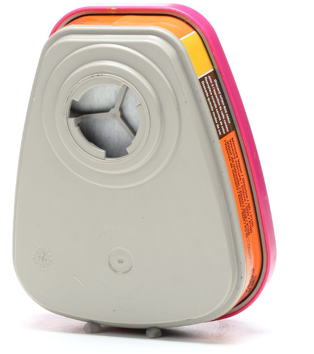 Brinda protección respiratoria contra vapores de Mercurio, gases de Cloro y partículas de sustancias específicas y reguladas por OSHA. Aprobado por NIOSH/MSHA; se usa con los respiradores de media cara y cara completa 3M con soporte de filtro de bayoneta. No utilizar en áreas cerradas o espacios confinados.