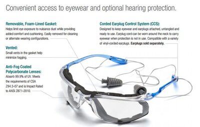 Los lentes de seguridad 3M™ Virtua™ CCS con marcos de espuma ofrecen un sellado cómodo que limita la exposición del ojo a las molestias del polvo y proporciona, a la vez, acojinado adicional. El lente con recubrimiento contra el empañamiento y la junta de espuma desmontable con ventilación hacen que estos lentes de seguridad sean ideales para entornos húmedos. Los lentes Virtua CCS incluyen el sistema de control con cordón para tapones auditivos (CCS, por sus siglas en inglés). El diseño versátil mantiene los lentes y los tapones auditivos en su lugar, sin enredos y listos para usarse; por eso, tu equipo contará con la protección cómoda que necesita para centrarse en los trabajos en cuestión. Los tapones auditivos se venden por separado.